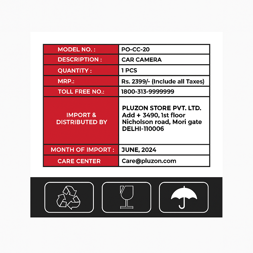Built with a wide-angle lens and infrared LED illumination, the CC20 ensures reliable performance day and night. The compact design and universal mounting array make it an ideal fit for hatchbacks, sedans, SUVs, or commercial vehicles. With its water-resistant housing and durable electronics, Pluzon CC20 provides peace of mind in all weather conditions.