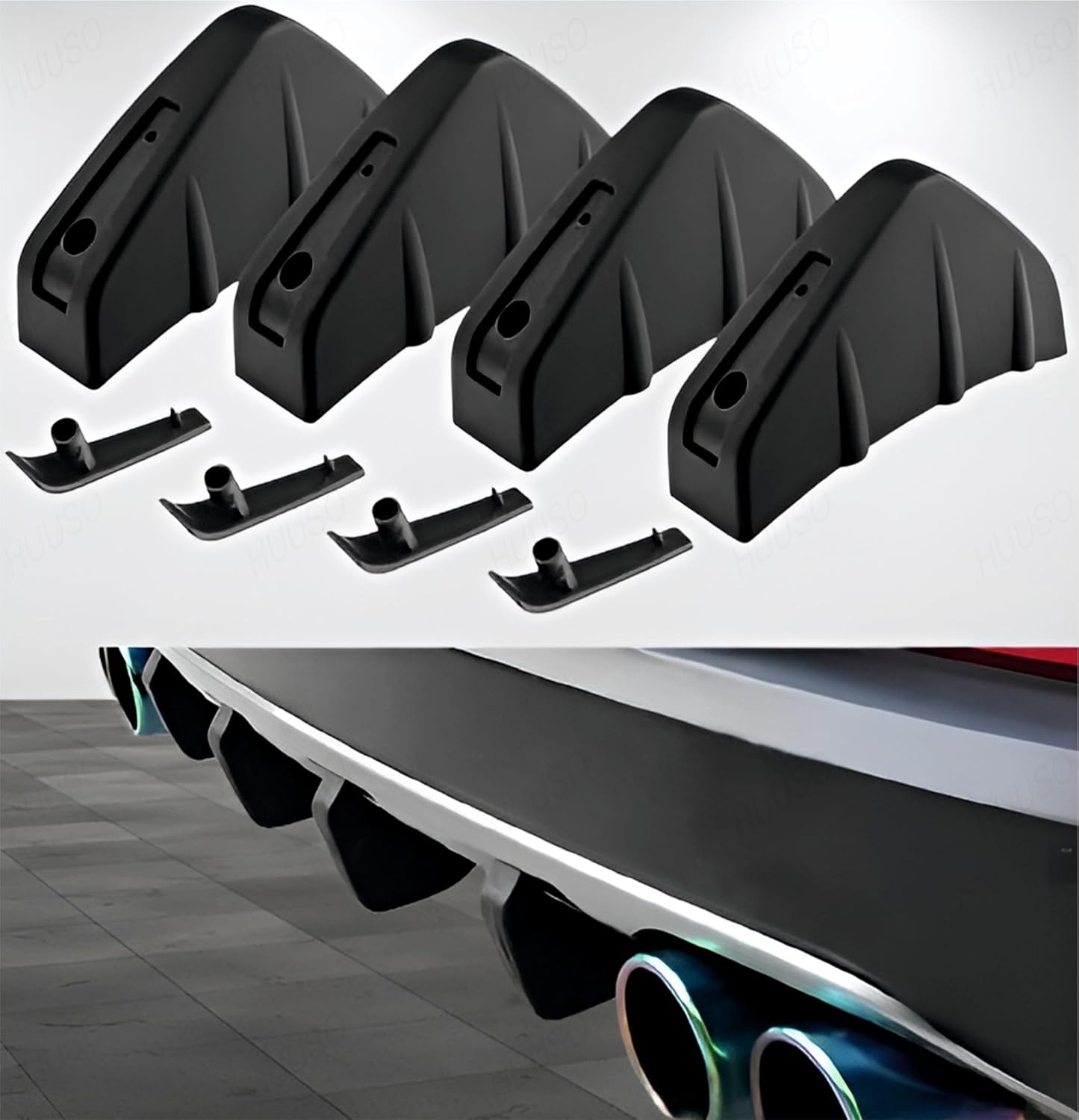 HUUSO 4 Pack Shark Fin Rear Bumper Diffuser Black