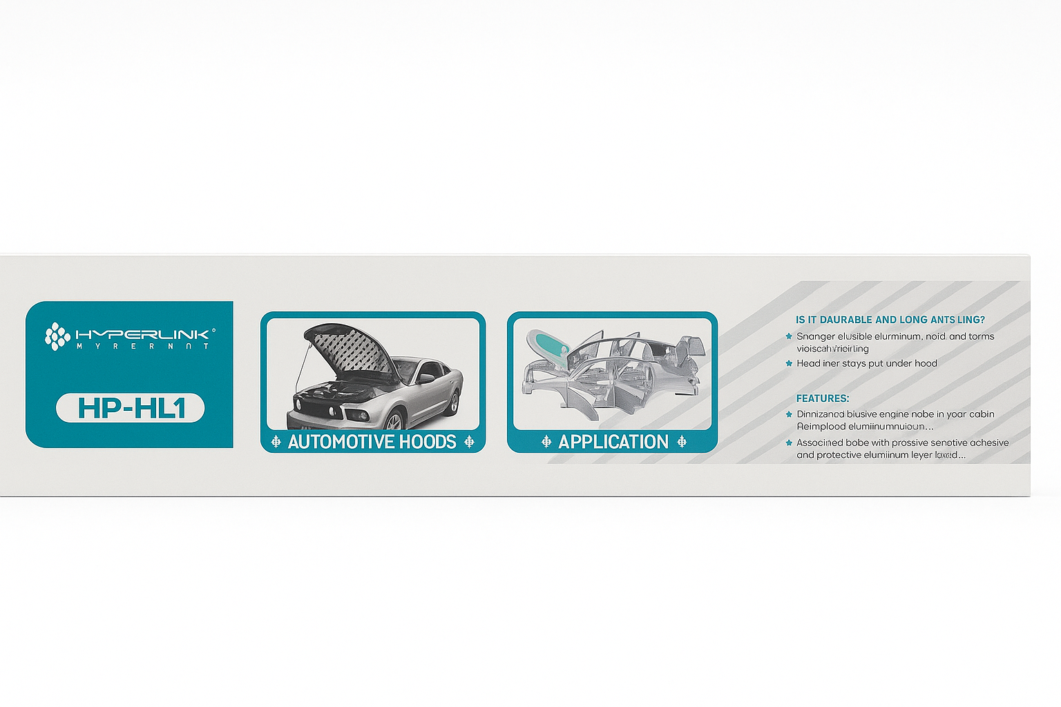 Application-Ready Design – Designed for automotive hoods, the packaging shows “Automotive Hoods / Application” icons for clarity.