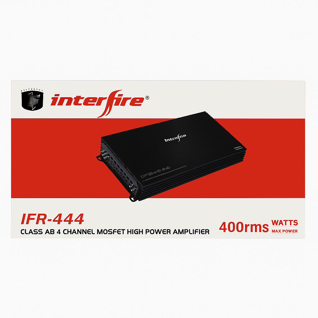 Bring your car audio system to life with the Interfire IFR-444, a powerful 4-channel amplifier designed for crystal-clear sound and reliable performance. Delivering 400 RMS watts, this amplifier provides clean power to drive speakers or subwoofers with precision and depth. Engineered with advanced circuitry and a durable build, the IFR-444 ensures consistent performance while protecting against overheating and overload. Perfect for music lovers who want to upgrade their sound system with clarity and balance.