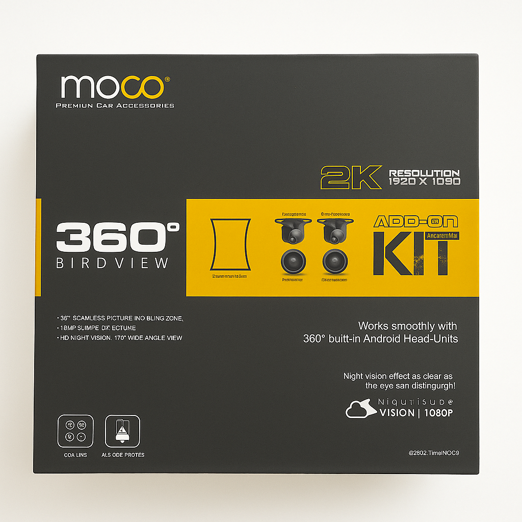 Experience a new level of driving confidence with the Moco 360° Bird View 2K Camera System. Designed to provide a full panoramic view around your vehicle, this advanced system integrates four ultra-wide-angle cameras to create a seamless 360° top-down perspective. Whether parking, reversing, or driving through tight spaces, the Moco 2K Bird View system ensures superior clarity and safety.