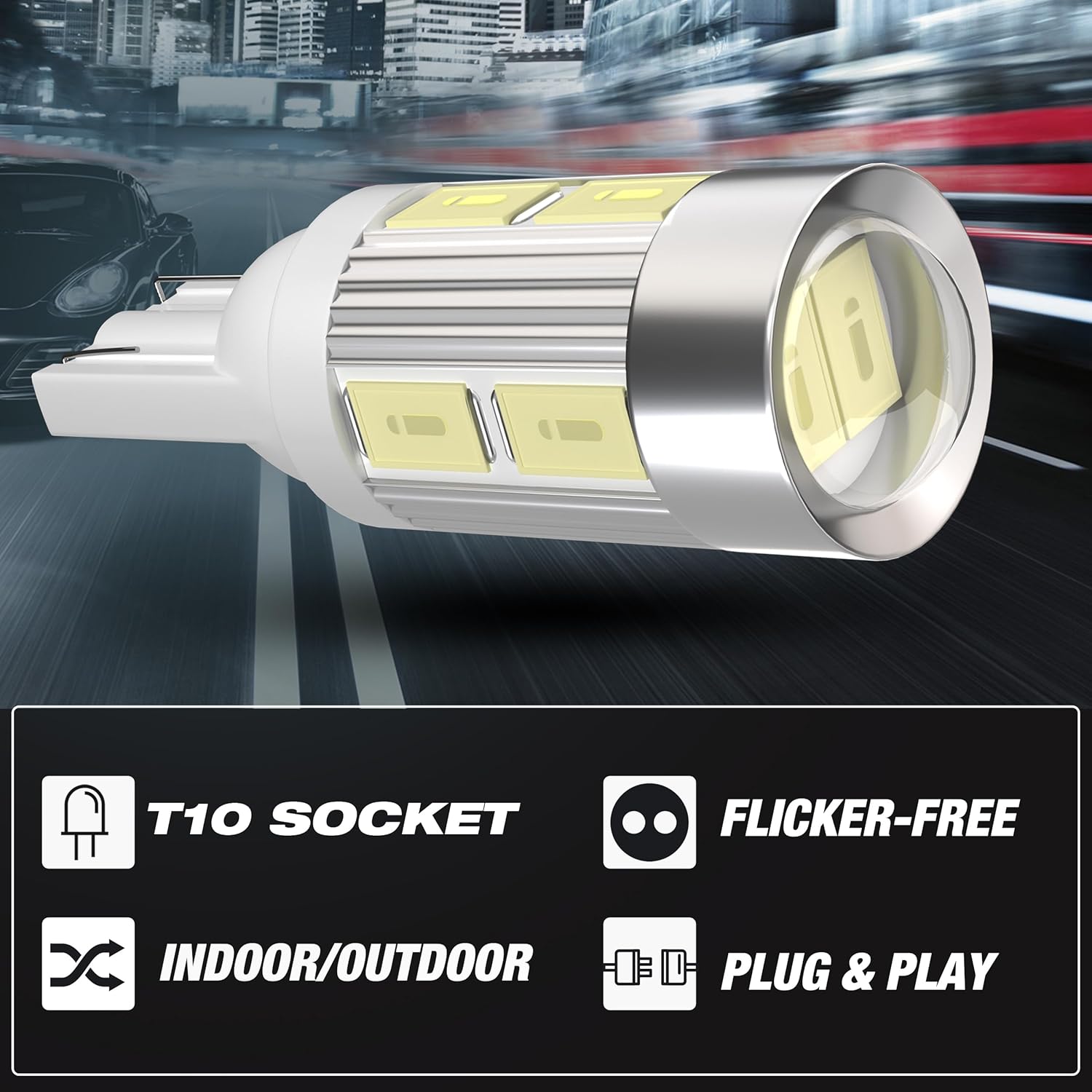 - DIRECT REPLACEMENT – AllExtreme T10 LED lights are perfect for direct replacement in all T10 Wedge type sockets of almost all motorcycles and cars. NOT SUITABLE FOR MODELS BEFORE 2012. Common use for interior and exterior of Motorcycle, Scooter, Car, Truck, Trailer, RV, Boat, Marine, etc.