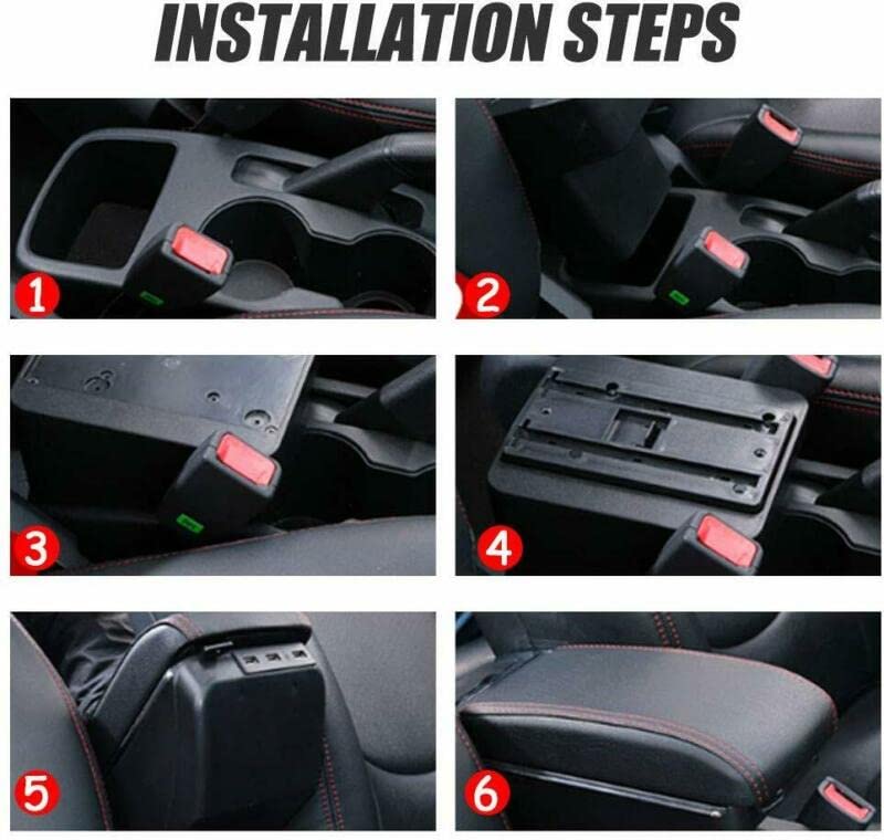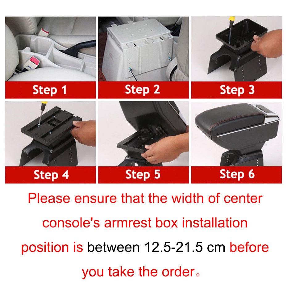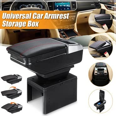 XZRTZ Black Leather Big Storage Armrest Box Front Center Console with Adjustable Bracket